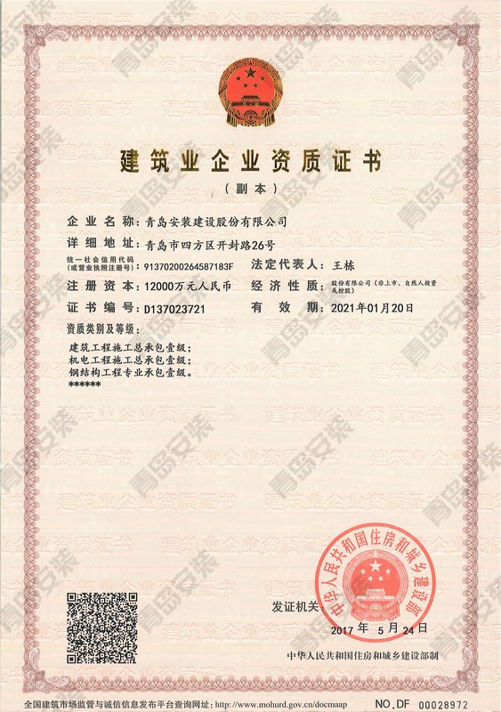 省級(jí)資質(zhì)證書